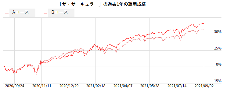 過去1年は、AコースBコースともに、比較的安定的に上昇しています。