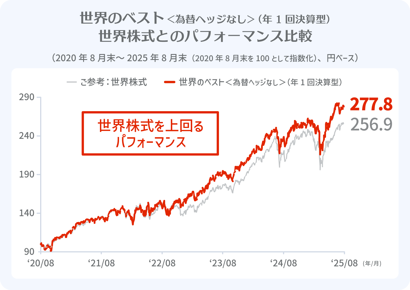 「世界のベスト」の世界株式を上回るパフォーマンス