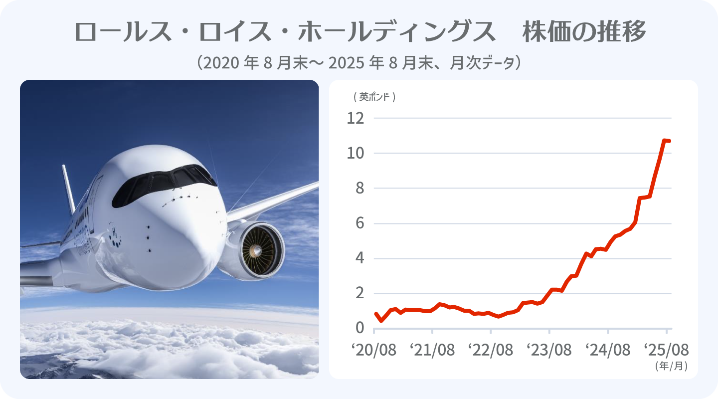 実は、このロールス・ロイス・ホールディングスは2020年8月から2025年8月までの5年間で1,000%以上株価が上がった銘柄なのです。