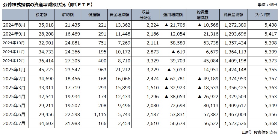 『純資産総額は3か月連続で最高額を更新し150兆円突破!』~2025年7月 投信資金流出入状況から~