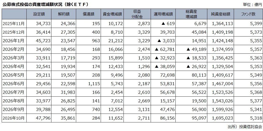 『月間設定額、運用層減額、純資産増加額が過去最高額を記録』 2025年10月 ~投信資金流出入状況から~