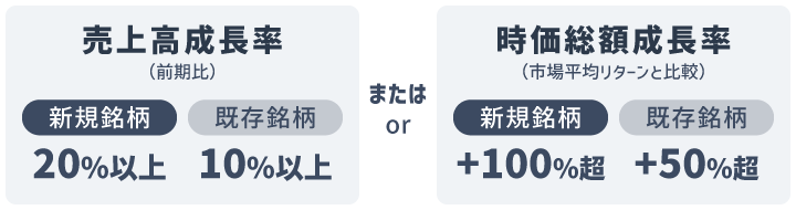 売上高成長率20%以上、または市場平均を大きく上回る時価総額成長