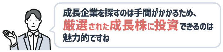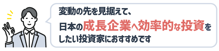 組入銘柄は「売上高成長率20%以上」または「時価総額成長が市場平均を大きく上回る」企業群。成長トレンドが明確な銘柄への投資が、このETF1本で実現します。