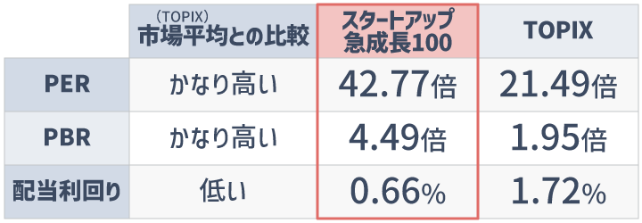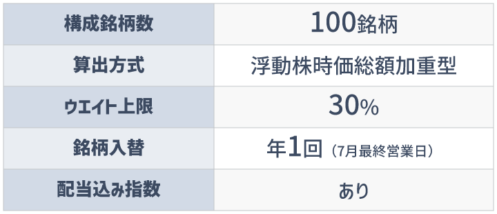 100銘柄を厳選するため、250銘柄で構成される東証グロース市場250指数と比べて個別銘柄へのウエイトは高くなる傾向があります。リスクもやや高い傾向にあり、特に短期的な変動には注意が必要です。
